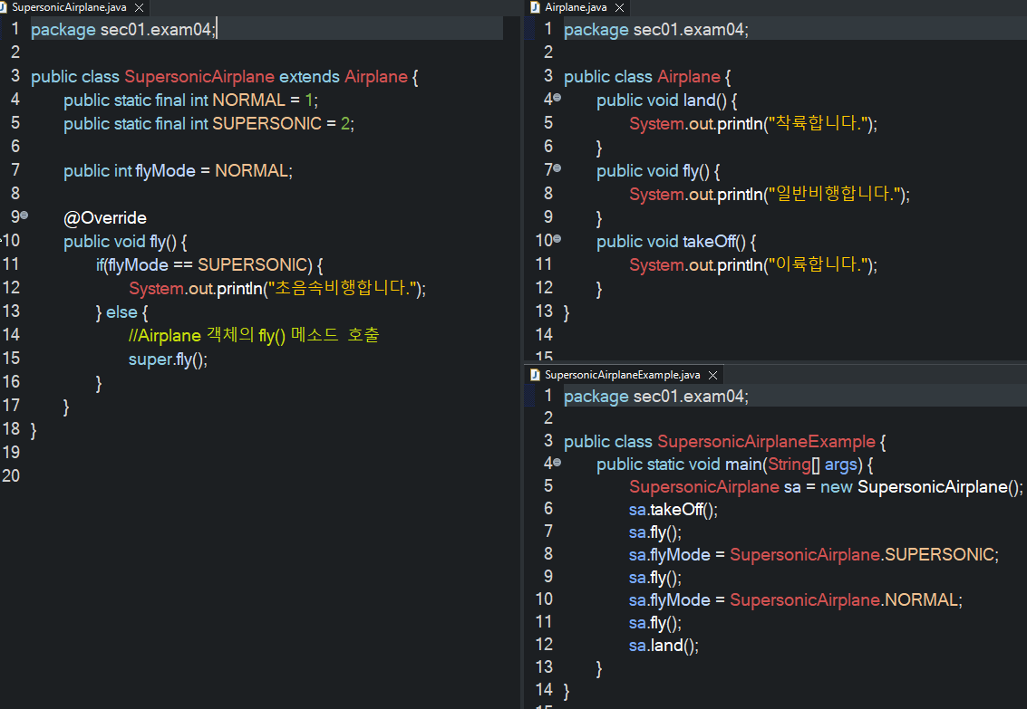 Super: 재정의한 메소드에 대해 다시 원본(부모) 메소드를 사용하고싶을 때 사용